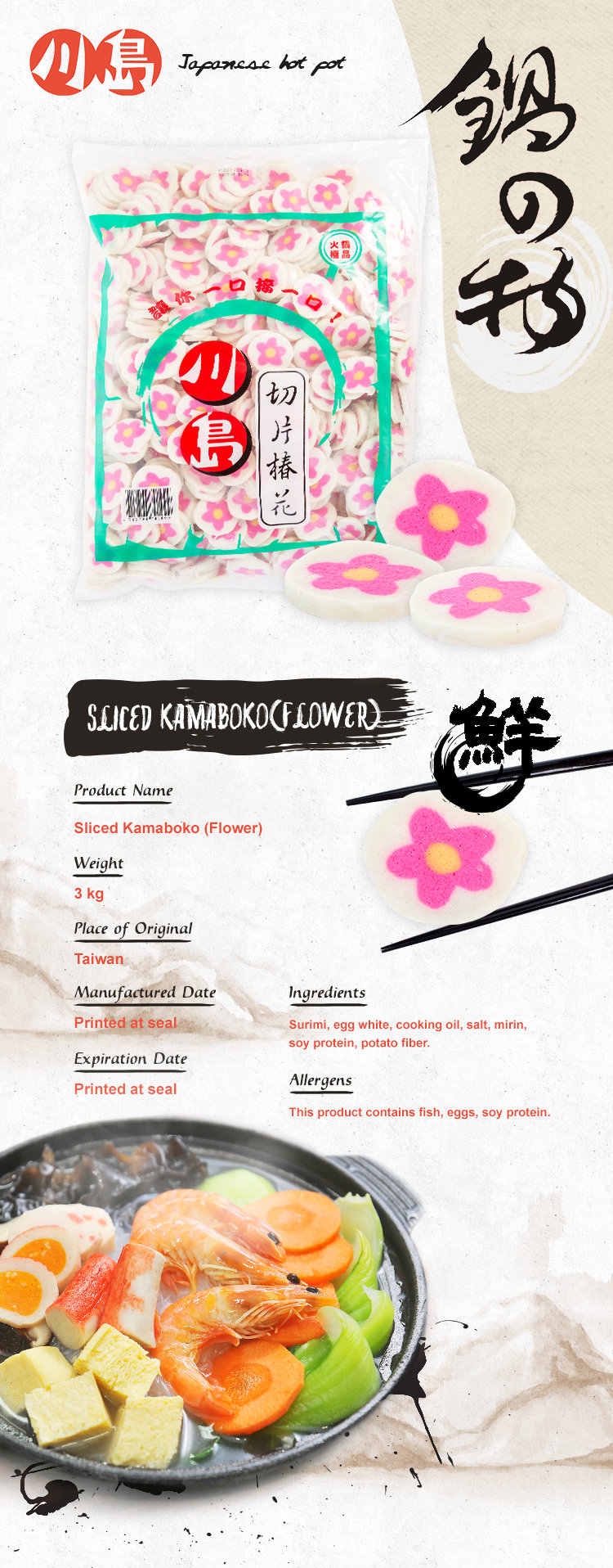 Ingredients : Surimi,Egg white,Cooking oil,Salt,Mirin,Soy protein,potato fiber.